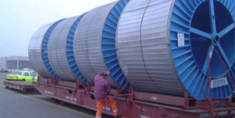 Take a look at the pictures taken on the Grimaldi Terminal at Antwerp of a shipment of cable reels to Santos which were loaded on Mafi Trailers.